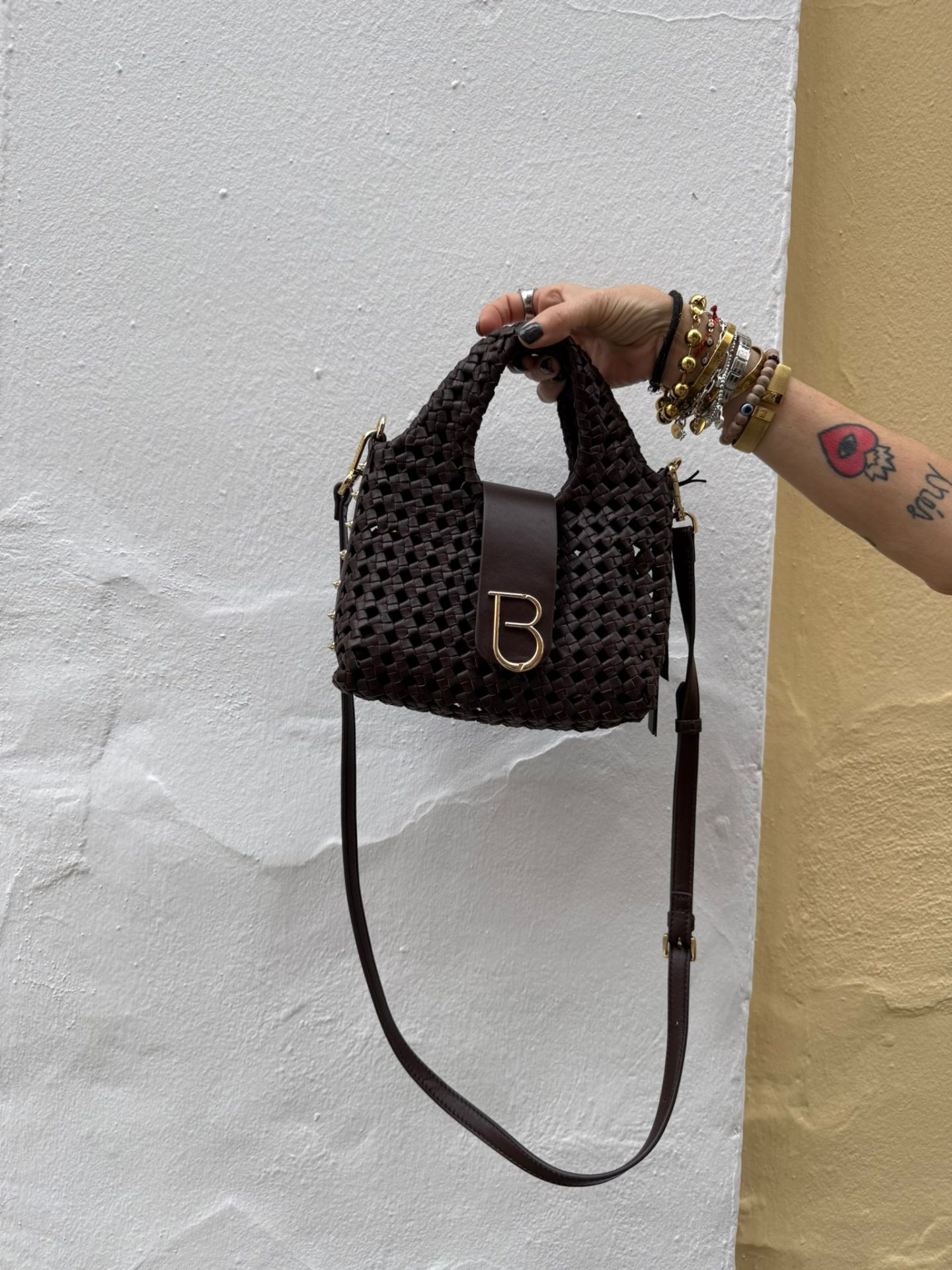 MINI BAG PIEL TRENZADA MARRON